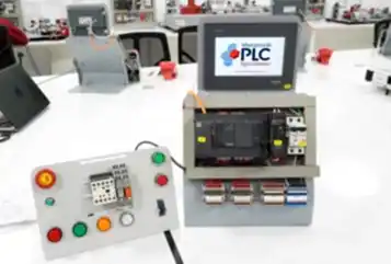 Mekanik bölümünde güç kaynağı, sigorta, HMI, PLC, lambalar, limit switch, endüktif sensör bulunan bu setimizde, PLC yazılımı ve HMI tasarımının eğitimi amaçlanmaktadır.